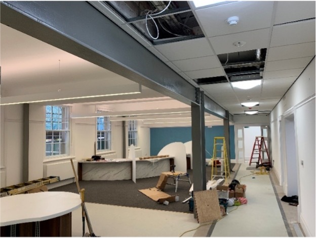 Bridlington Town Hall is a live facility, the first floor was in constant use during the refurbishment, which meant that the wellbeing and safety of staff working had to be considered during the works.