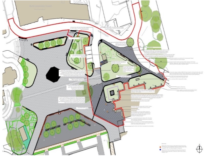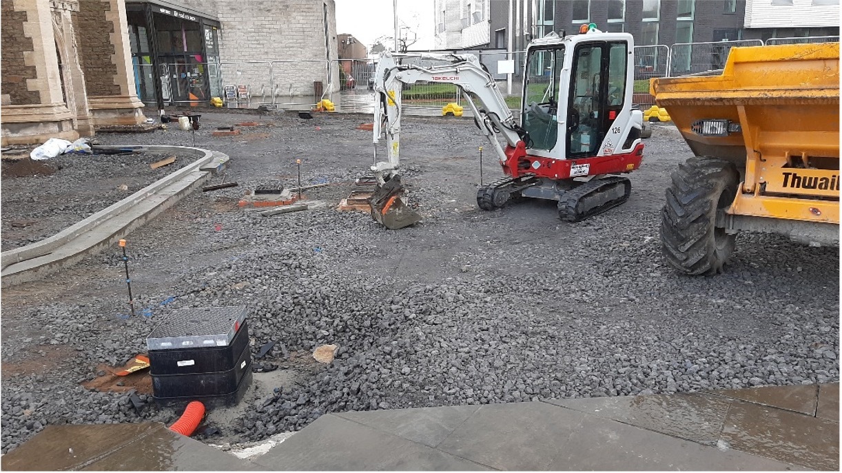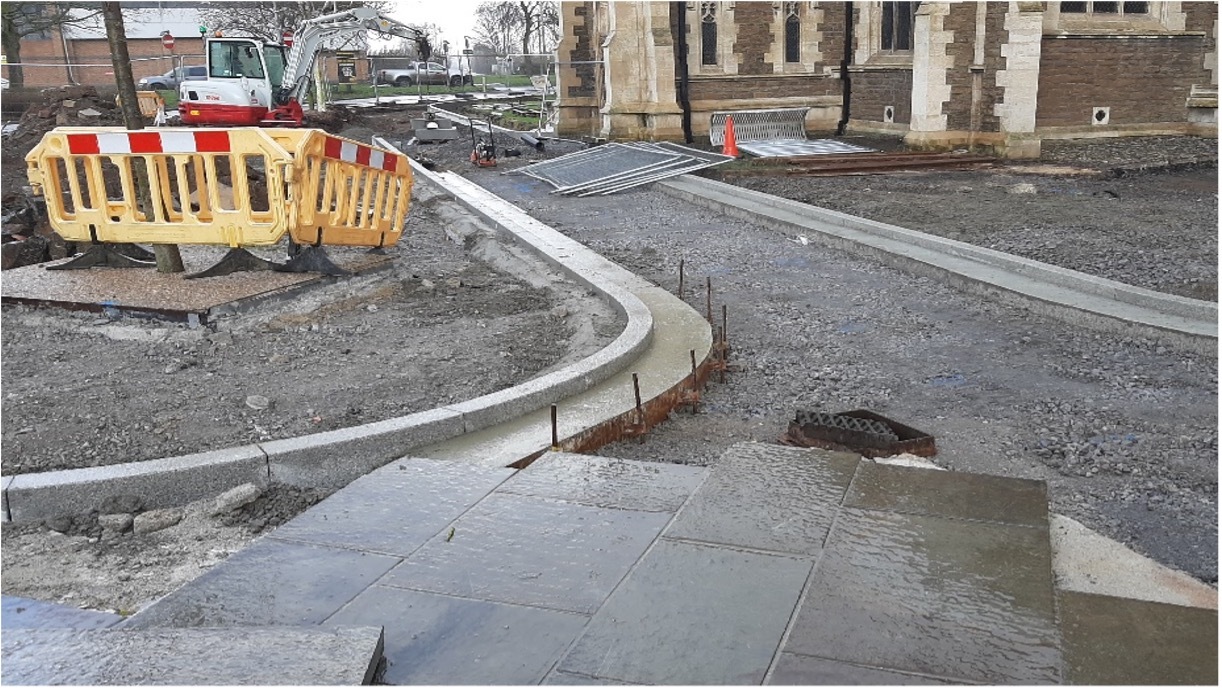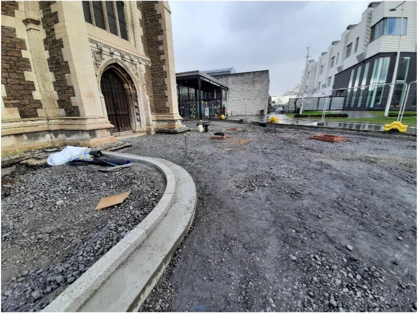Landscaping & Historical Building: It was important to our Client that the landscaping of the newly developed areas blended seamlessly with the previously landscaped areas of the square, whilst at the same time ensuring the new landscaping reflects the significance of the Grade II* Listed former Church of St John and the stunning restoration works that have recently been completed. This was achieved by close liaison with the client and the architect regarding matters like the careful selection of the best materials for use and establishing the most suitable new paving levels.